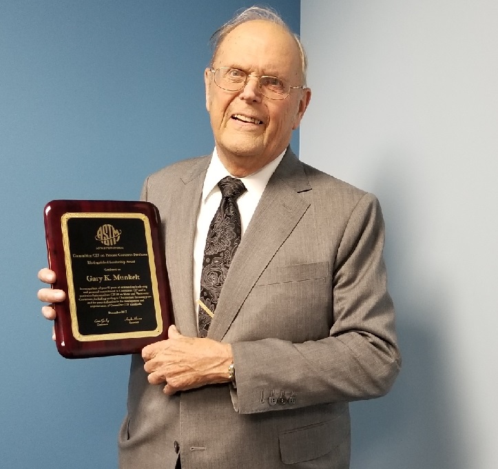 Gary K. Munkelt, PE, displays his ASTM C27 Distinguished Service Award, presented to him in December, 2017 for his 40+ years of service and commitment to the ASTM C27 committee.