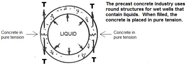 Tension capacity in concrete is known to be much weaker than compression capacity and is seldom used without reinforcing steel bars when tension is required. A statement in the ACI 318 Structural Concrete Building Code suggests that for most conditions tension should be taken as zero (ACI Committee 318, 2014). There are conditions, however, where tension capacity is important. Cracking and diagonal shear limits involve tension. In the underground precast concrete industry thickness of walls and slabs need to be thin to reduce weight. One such product is the precast burial vault where a wall with short span is exposed to medium loads and resists load with only tension capacity of concrete. The discussion following will establish tension capacity values of concrete based on available test data. It also includes discussion of factor of safety as applied to poured-in-place concrete and underground precast concrete products.