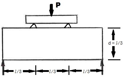 This test method consists of applying a load to a rectangular beam until it breaks. The maximum applied load (P) is used in a formula to create the “theoretical maximum tensile strength,” also called the “modulus of rupture”. It is useful to designers of flexural beams by providing an indicator of when plain concrete will crack.
