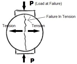 The test method uses the same-shaped cylinder normally made to test for compressive strength of the concrete. Instead of applying compression to the ends of the cylinder, it is applied to the longitudinal axis. Tensile strength of the concrete is calculated from the formula: